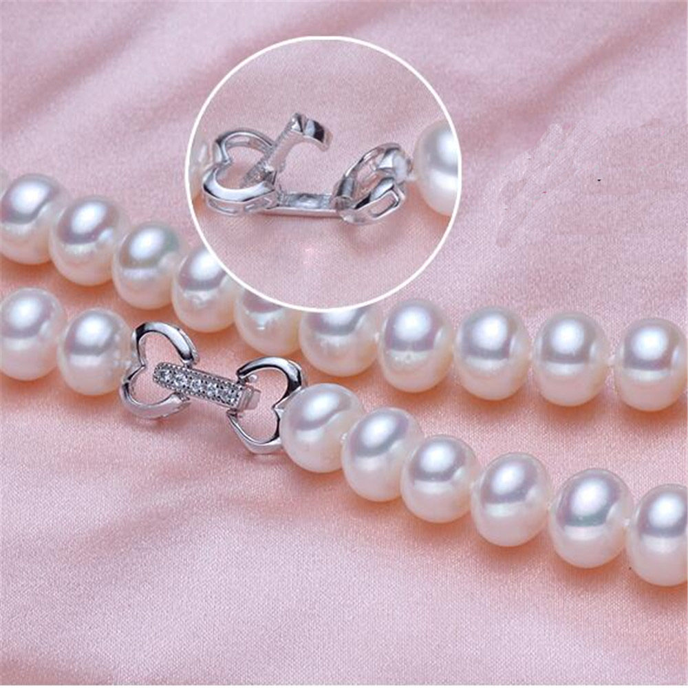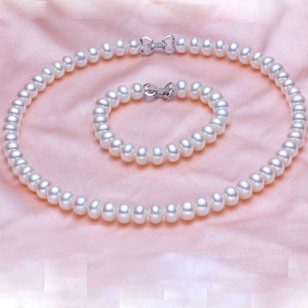 Fashion Women’s Fine 8-9mm Necklace/Bracelet Jewelry Set White S925 Silver SterlingButton Fashwater Pearl Jewelry