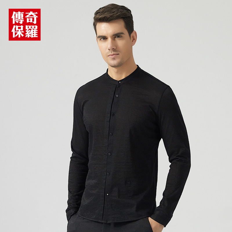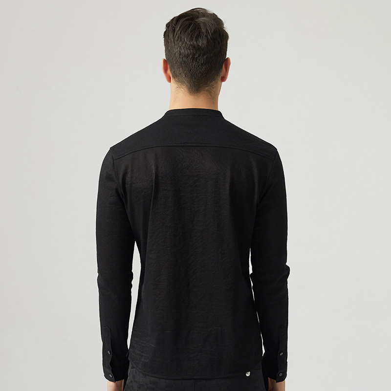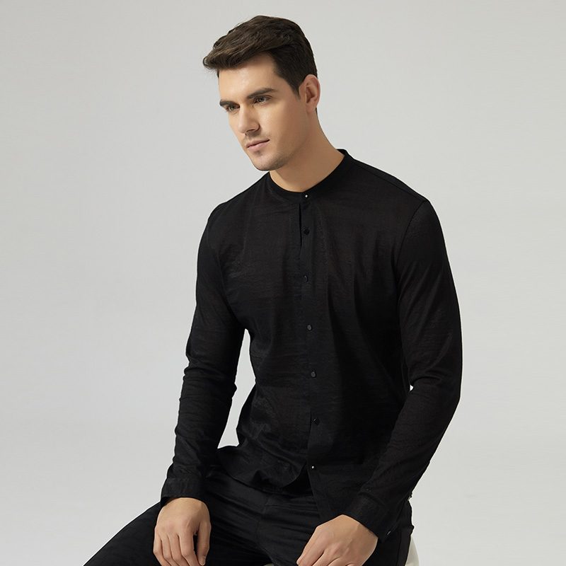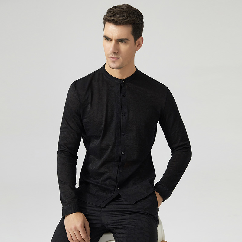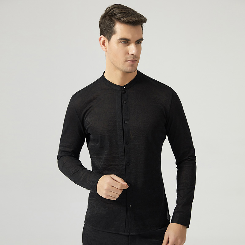 new style mens collarless shirts black fashion mens long sleeve dress shirts slim fit high quality