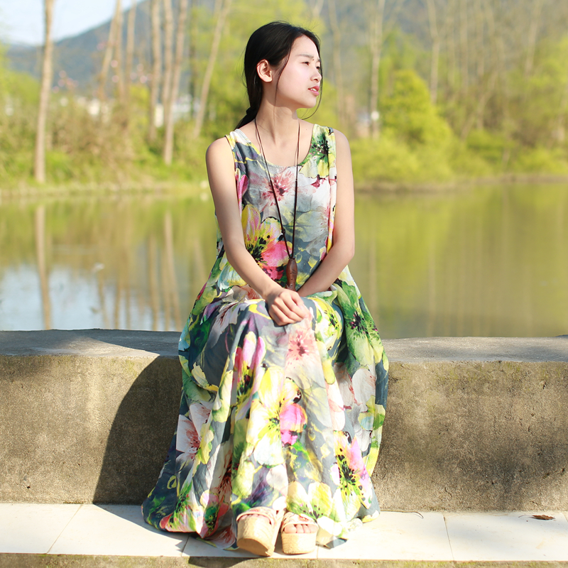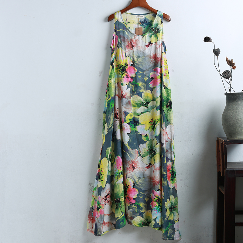 Pullover, O Neck, Sleeveless, Pockets, Sundress, Maxi Dress, Women Dresses, Folk Style, Gown, Tank Dress, Robe Femme, Floral Dress, Elbise, Jurken, Vestidos
