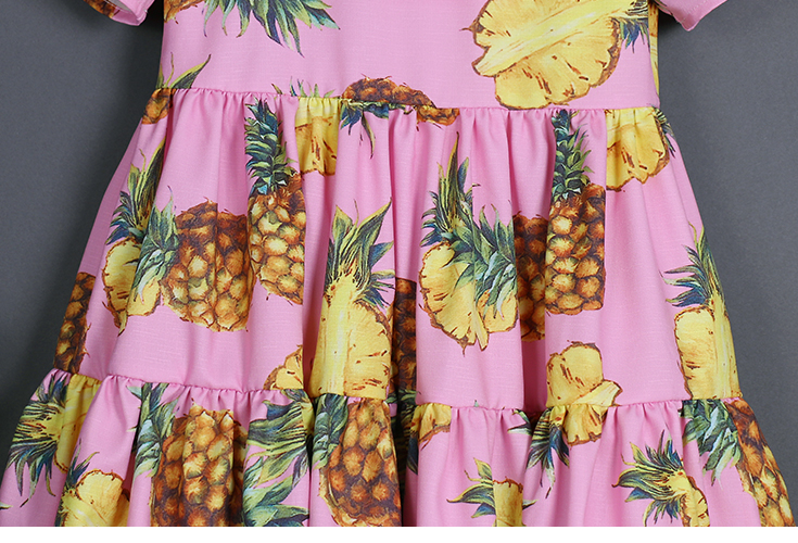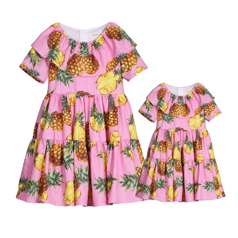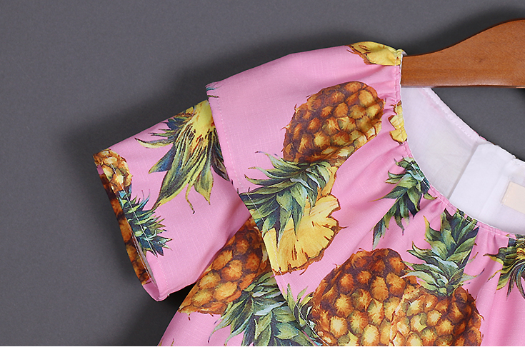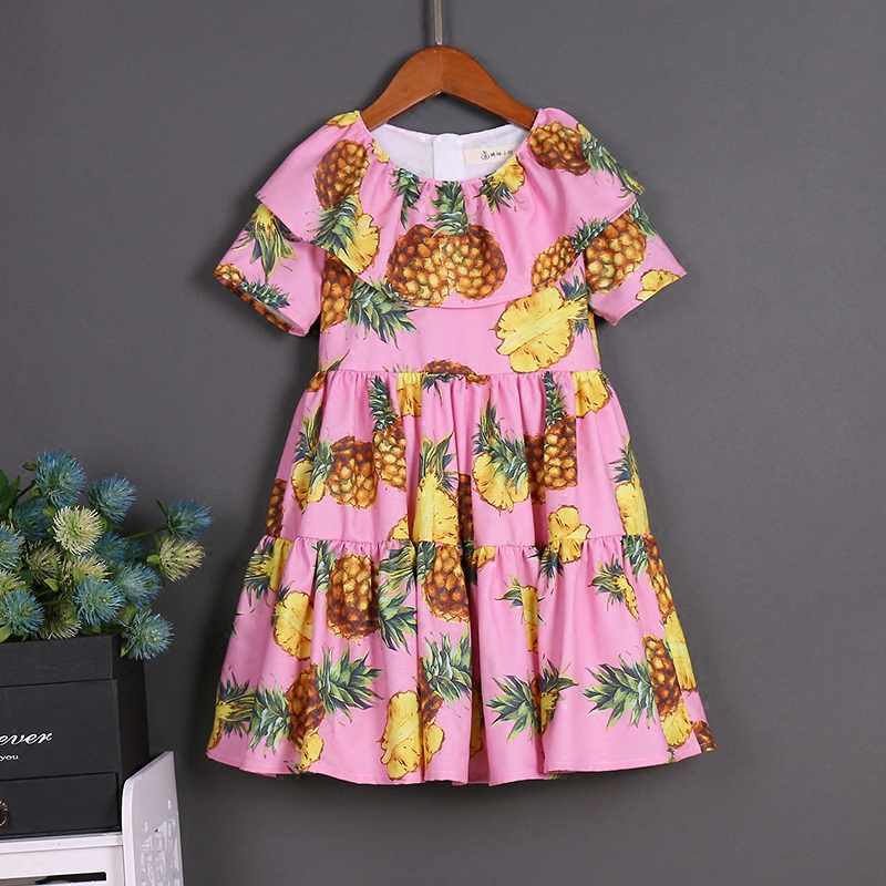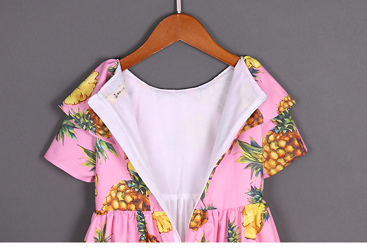 Element: loose flouncing collar big pleated patchwork short sleeves style pineapple prints cute casual dresses , one-piece set girls beach skirts