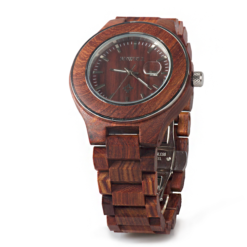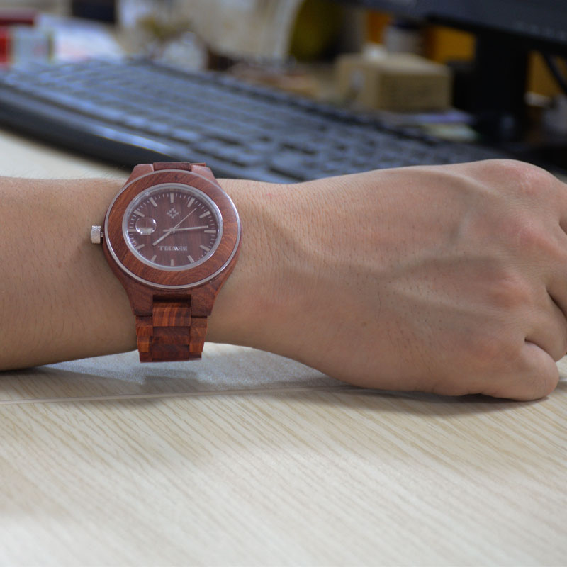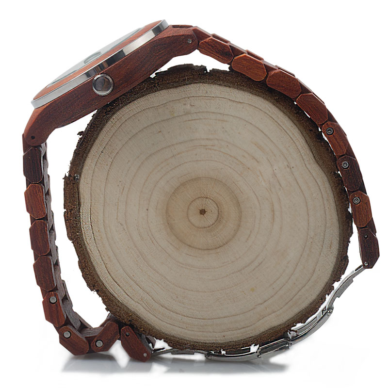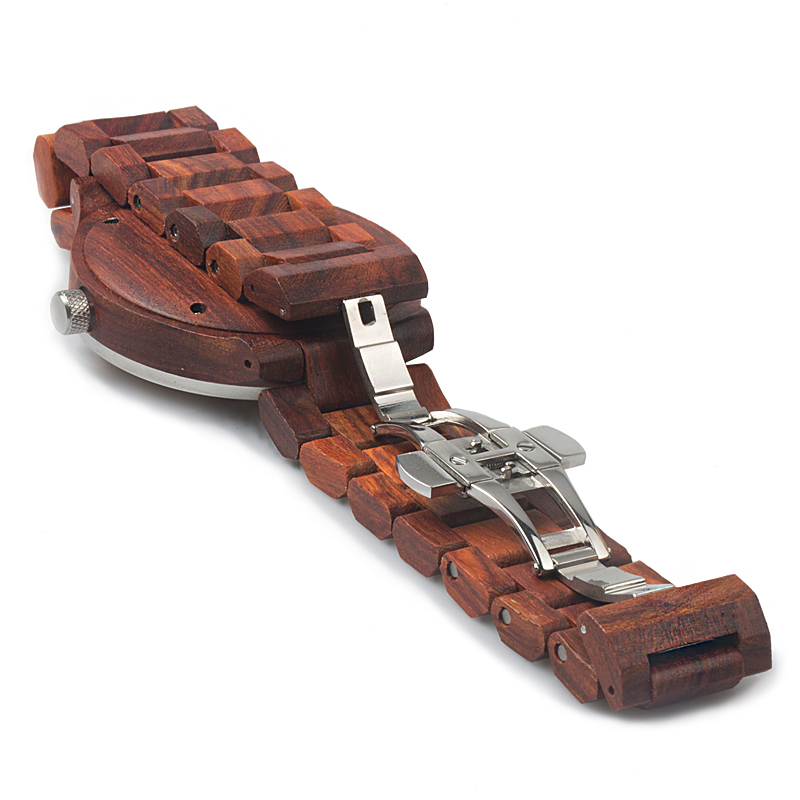 Features: Each watch uniquely made by hand of natural wood, healthy and comfortable (non-toxic hypo-allergenic). Metal and wood case with big dial, very unique and delicate. High quality Japanese 2115 movement, keep the time precise, and it is accurate to within ±26 seconds per year. Butterfly buckle, easy to take on and off. It sets with luminous hands, you can see the time in the dark. Water resistance at 30m, convenient to you daily life. Adjustable to fit any wrist, the band is designed longer than need, all you need to do is to resize it as you want.