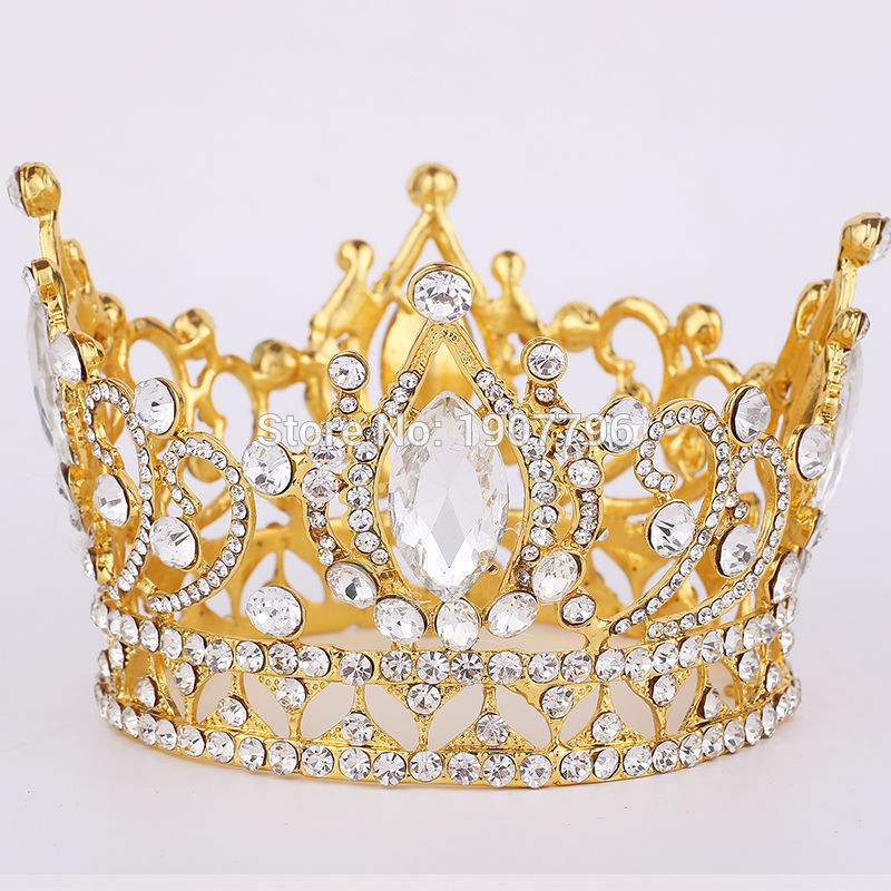 Big European Royal Crown Golden Rhinestone crown Tiara Super Large Quinceanera Crown Wedding hair Accessories Wholesale