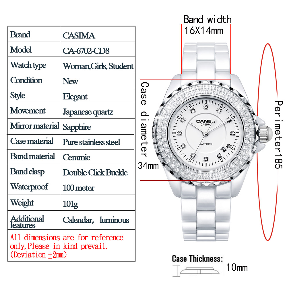 Brand ladies dress watches casual elegant classic white ceramic quartz watch women girl clock waterproof 100M relogio feminino