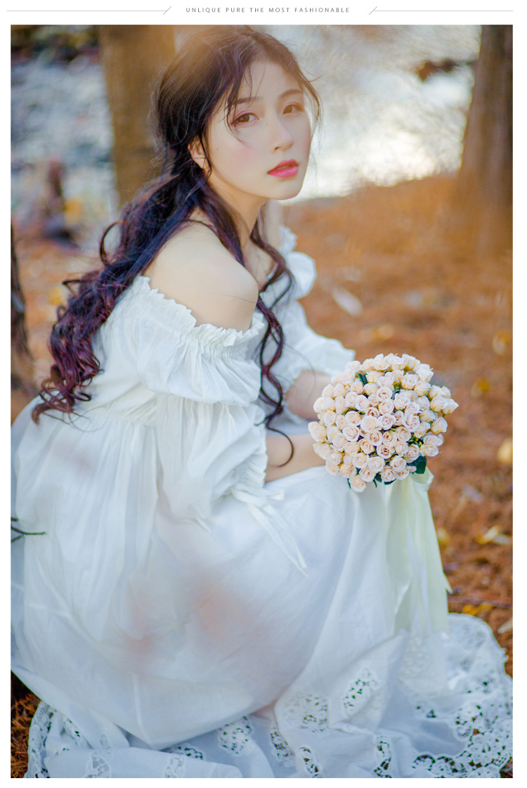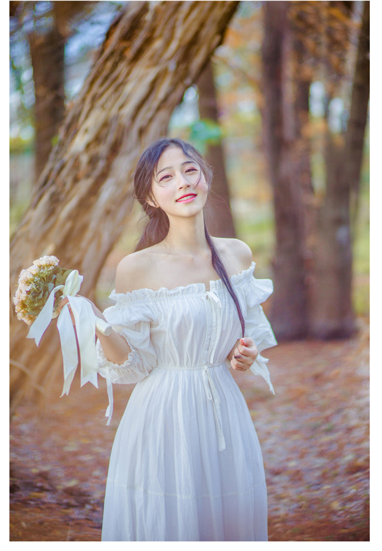 M Dress length 128cm, Bust 89cm, Waist 60-80cm, Sleeve Length 48cm