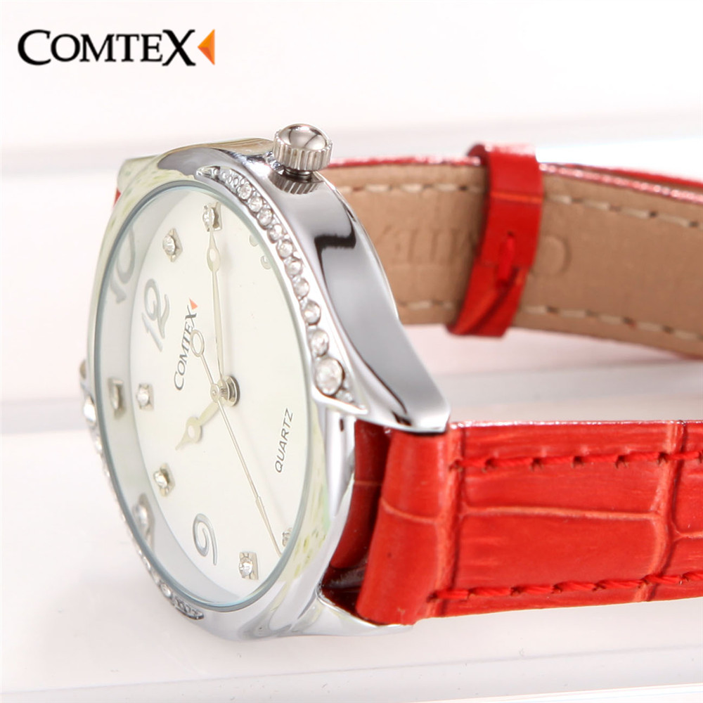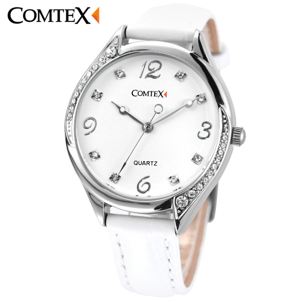 Comtex Women’s Watch Black White Leather Strap Girl Watches Lady Wristwatch Waterproof Quartz Crystal Spring Fashion Clock reloj