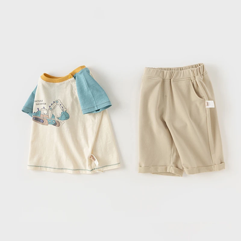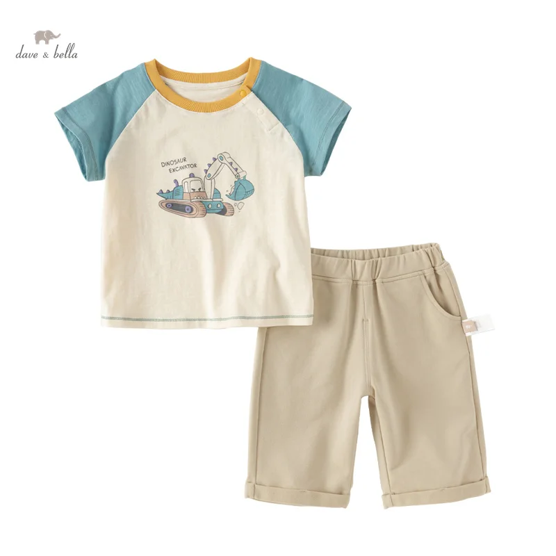 Dave Bella Kids Summer Brand Leisure 2pcs O-neck Short Sleeve Cotton T-shirts+Pants Suits Boys Casual Children Clothes DB2240872