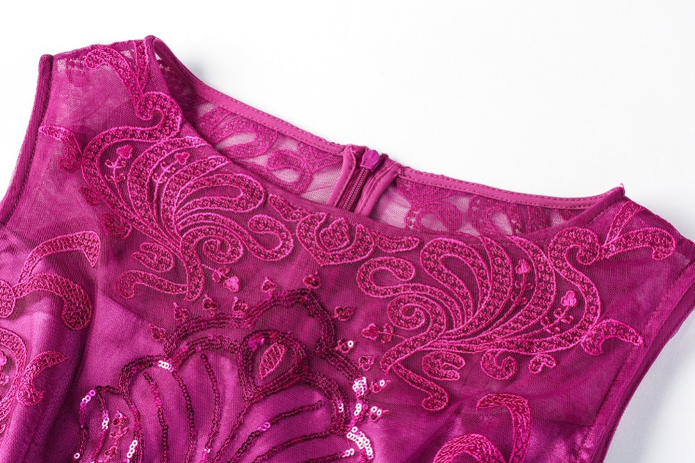ElaCentelha Women Dress High-End Sleeveless Mesh Patchwork Sequined Party Dresses Ladies Slim Embroidery Work OL Dress