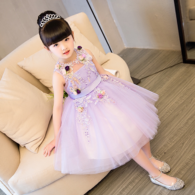 Girls Luxury Sleeveless Pink Lace Princess Dress New Baby Girls Costume Party Dress Kids Clothes Cotton Children Age 3-15T