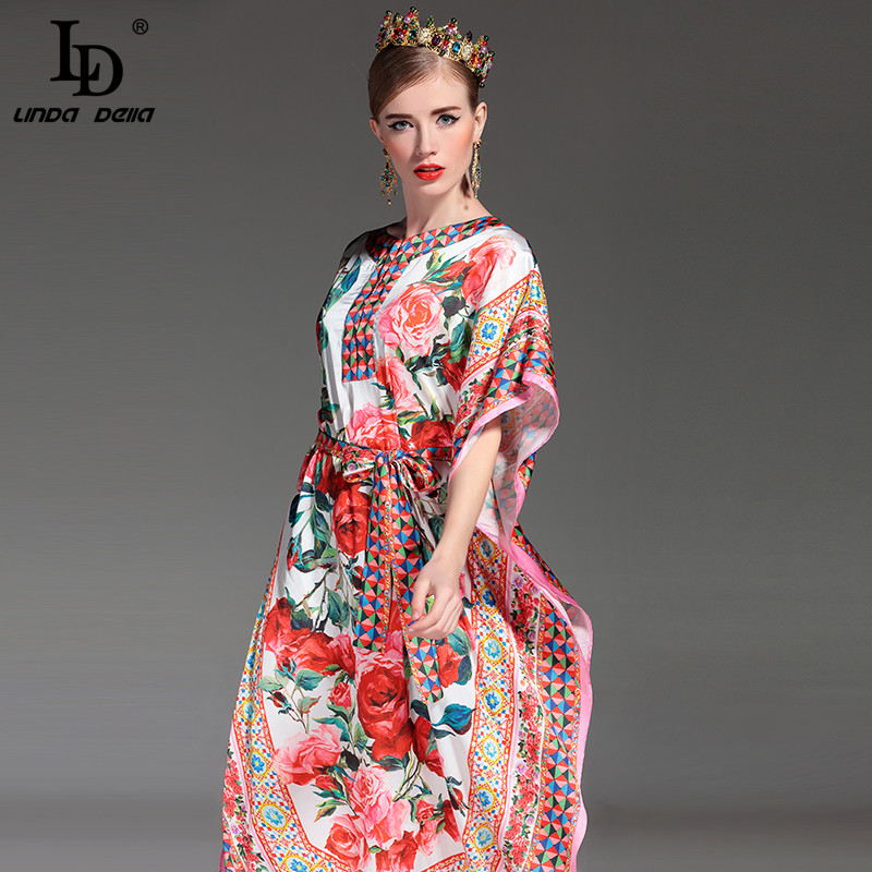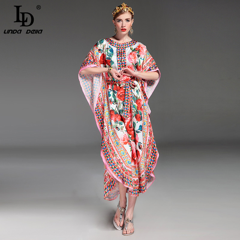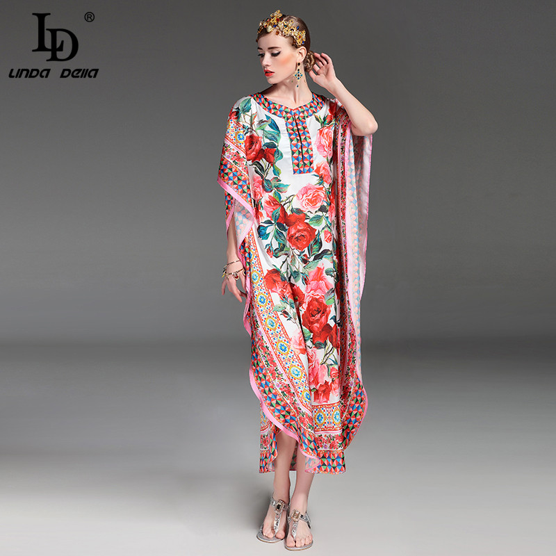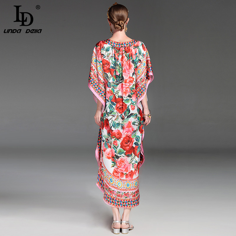 High Quality New Fashion Runway Spring Summer Dress Women’s Charming Rose Floral Printed Beach Loose Dress