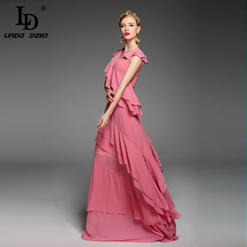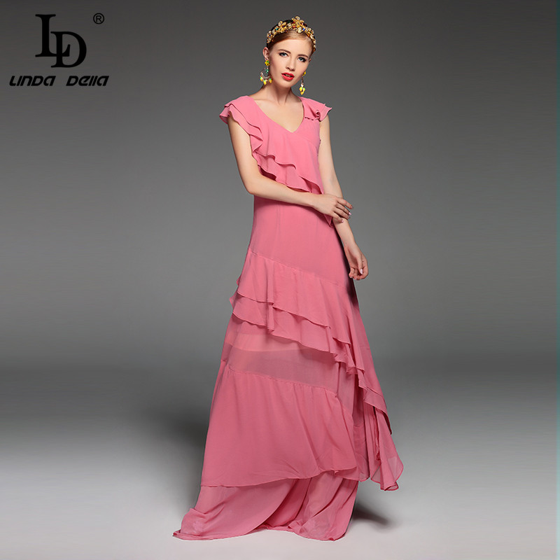 High Quality New Fashion Runway Summer Maxi Dress Women’s Sexy V neck Elegant Tiered Printing Ruffles Long Dress