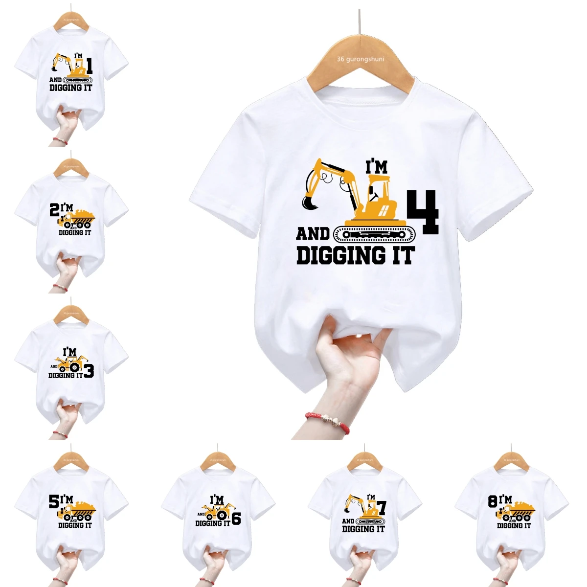 I’M 1 2 3 4 5 7 8 9 And Digging It T Shirt Excavator Bulldozer Construction Vehicle T-Shirt Birthday Boy Gift Kids Clothes Top
