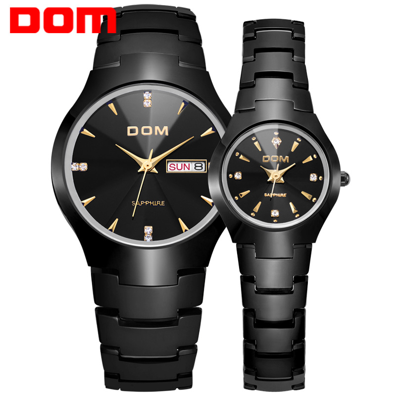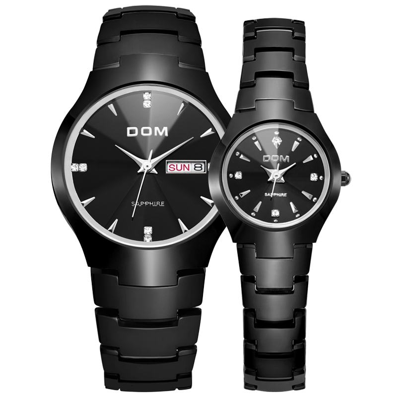 Lovers’ Tungsten Steel Watches Couple Luxury Fashion Business Men Full Steel Watch Quartz Waterproof Women rhinestone