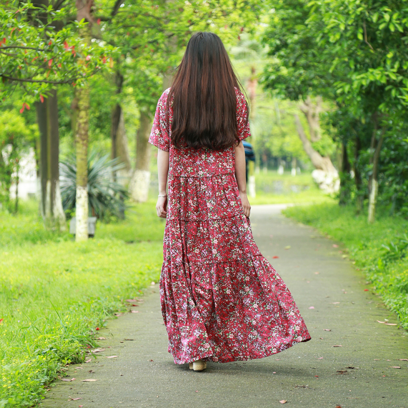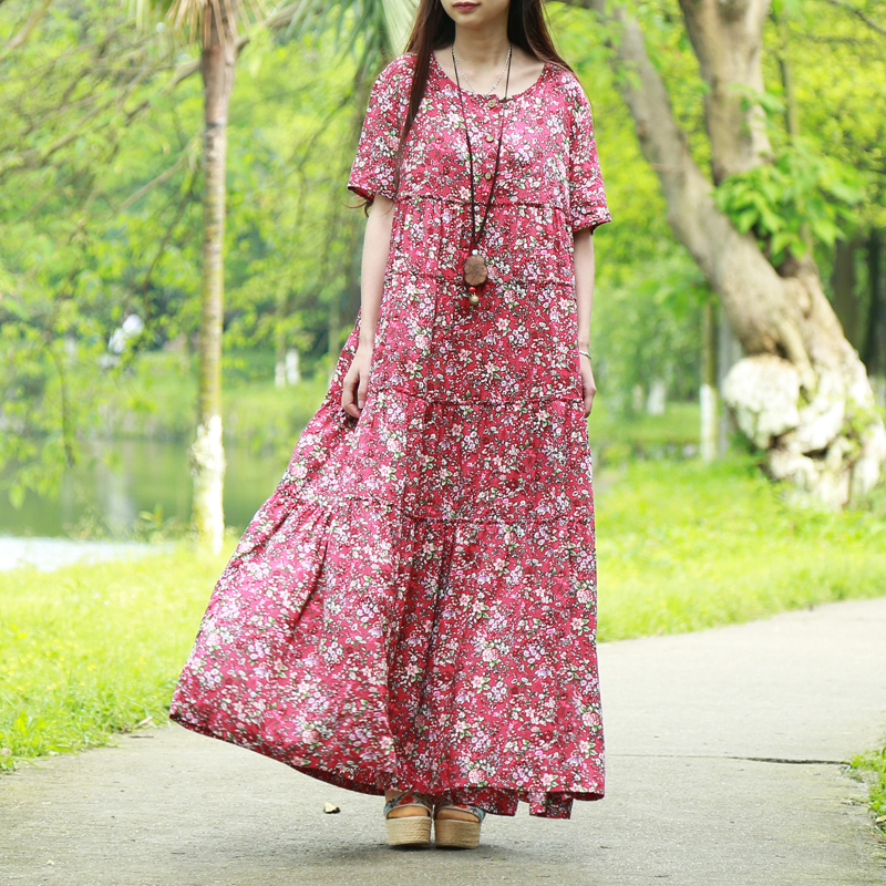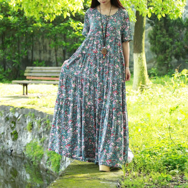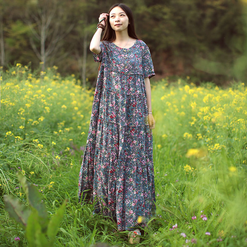 Small Flower Print, Pullover, O-neck, Pockets, Short Sleeve, Summer Dress, Maxi Dress, Boho, Women Dress, Vintage Design, Robe Femme, Vestidos, Jurken, Elbise, Sommer Kleid |
