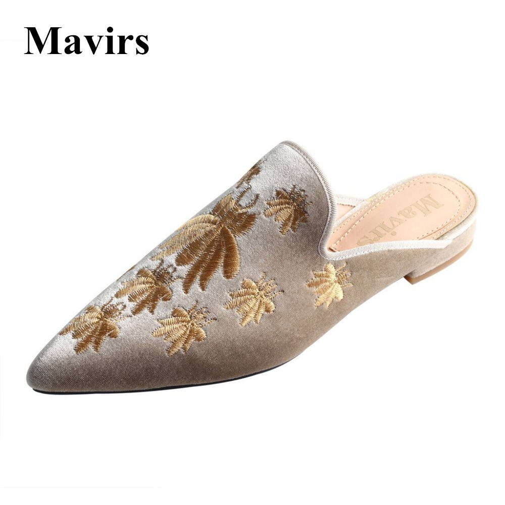 - Item Name: Fashion Honeybee Embroidery Mule Animal Women Slippers Flats Casual Shoes Velvet Backless Slip On Loafers Flat