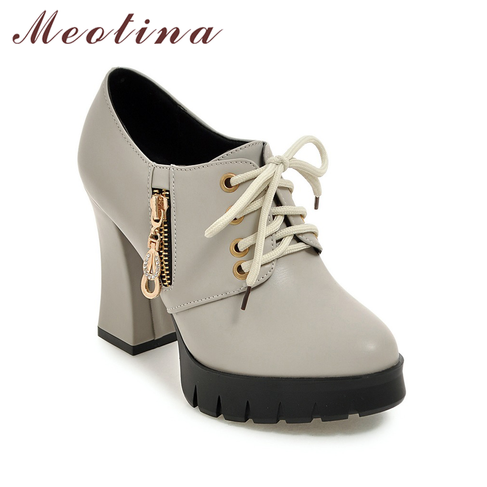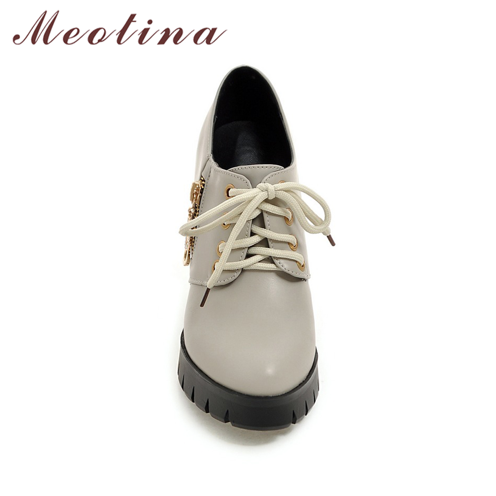 Meotina Shoes Women Platform Shoes High Heels Lace Up Wedge Heel Punk Zipper Women Shoes Autumn Chaussures Femme Black Size 43