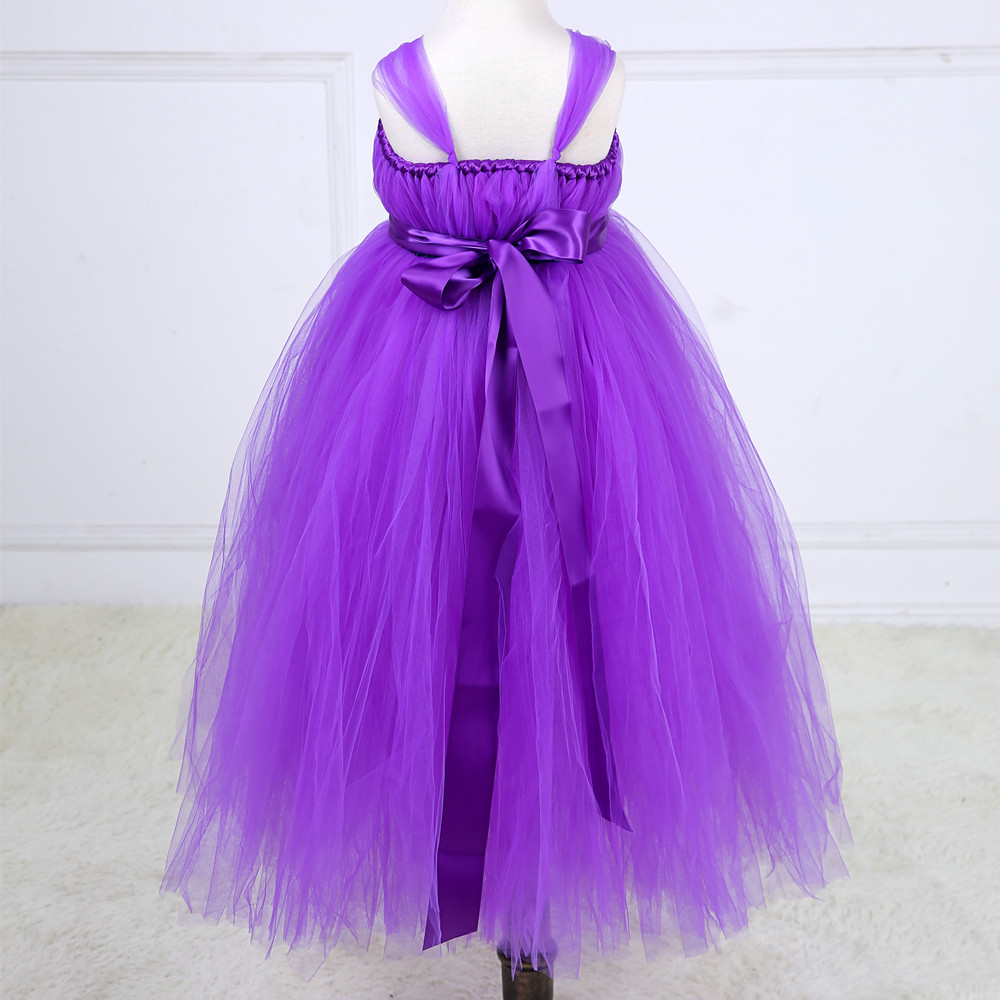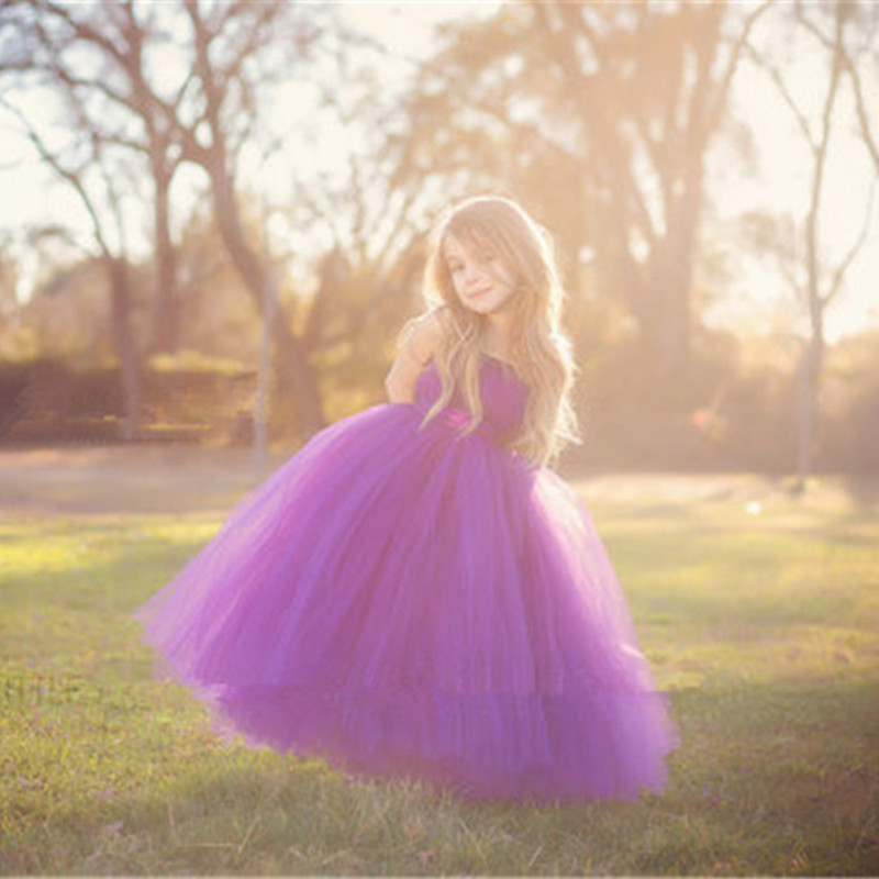 Purple,Gray Flower Girl Dresses Cute Kids Party Pageant Wedding Bridesmaid Bridal Tulle Tutu Dresses Princess Ball Gown 2-14 Y