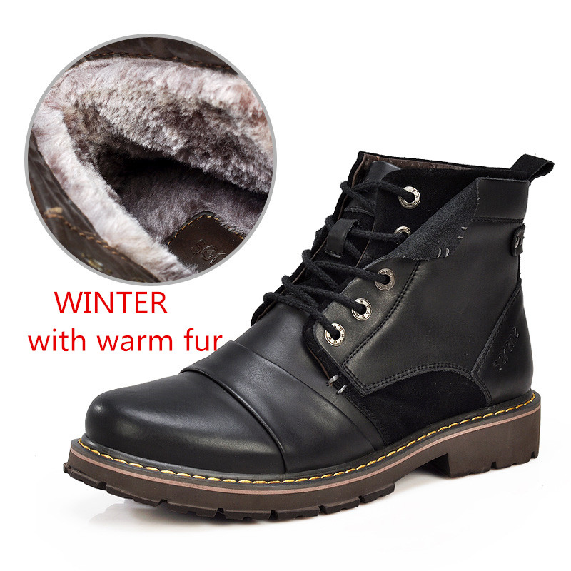 SERENE Brand Men Winter Boots Size 35~45 Warmest Genuine Leather Russian style Men Snow Boots Cow Split Leather Men Fashion Boot