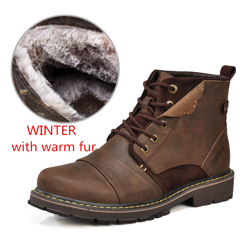 SERENE Brand Men Winter Boots Size 35~45 Warmest Genuine Leather Russian style Men Snow Boots Cow Split Leather Men Tooling Boot